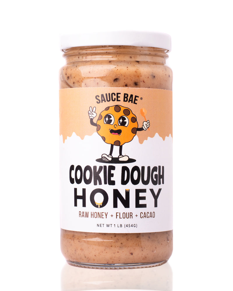 Experience that rich, nostalgic cookie dough taste, with a twist … and without the guilt. Our all-natural Cookie Dough Raw Honey is made with simple ingredients and is spoon-ready straight from the jar! It features 100% cacao chocolate chips (unsweetened) mixed with our signature, unfiltered and unpasteurized honey sourced from the USA. The infusion of vanilla bean, flour, and butter delivers an authentic cookie dough flavor. Now you can enjoy the benefits of Raw Honey while satisfying your cookie dough addiction.